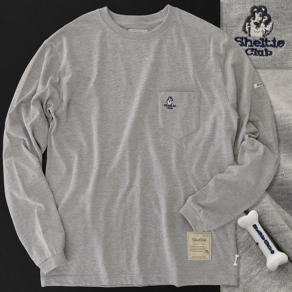 - 新品 シェルティークラブ 刺繍 ポケット 長袖 Tシャツ M 灰 【SH1441110_97_M】 Sheltie Club クルーネック ロンT カットソー
