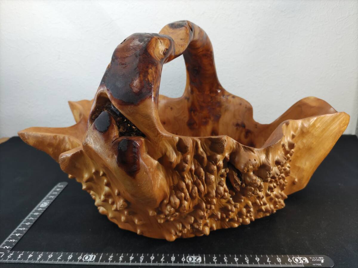 - ■送料無料!■瘤の工芸品・H22×W39×D28cm■小物入れ■菓子鉢■木製■無垢■天然木・唐木■果物・フルーツバスケット!