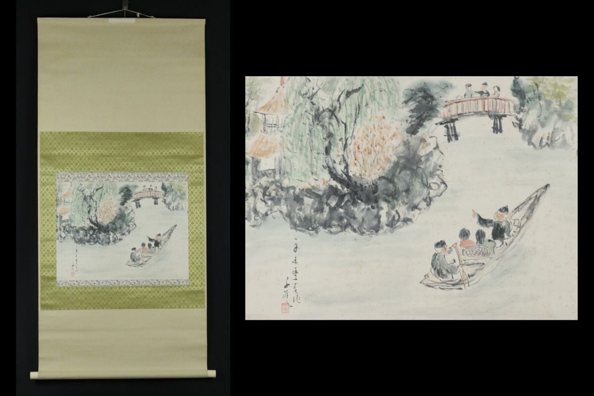 - 10811■【真作】小川千甕 遊舟図 肉筆 共箱 北村敬重・浅井忠師事 珊瑚会 日本南画院 掛軸