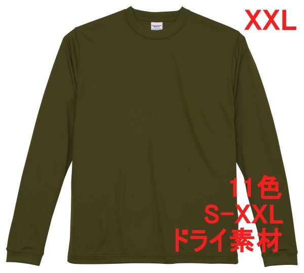 - 長袖 Tシャツ XXL OD ドライ素材 吸水 速乾 無地 袖リブ ロンT ドライ 無地T 長袖Tシャツ A516 3L 2XL カーキ オリーブ グリーン 緑 緑色