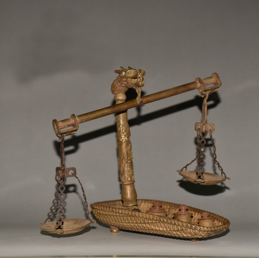 - 旧蔵 純銅 真鍮 龍天秤 銅天秤 天地良心称 置物 護符開運 お守り 厄除け
