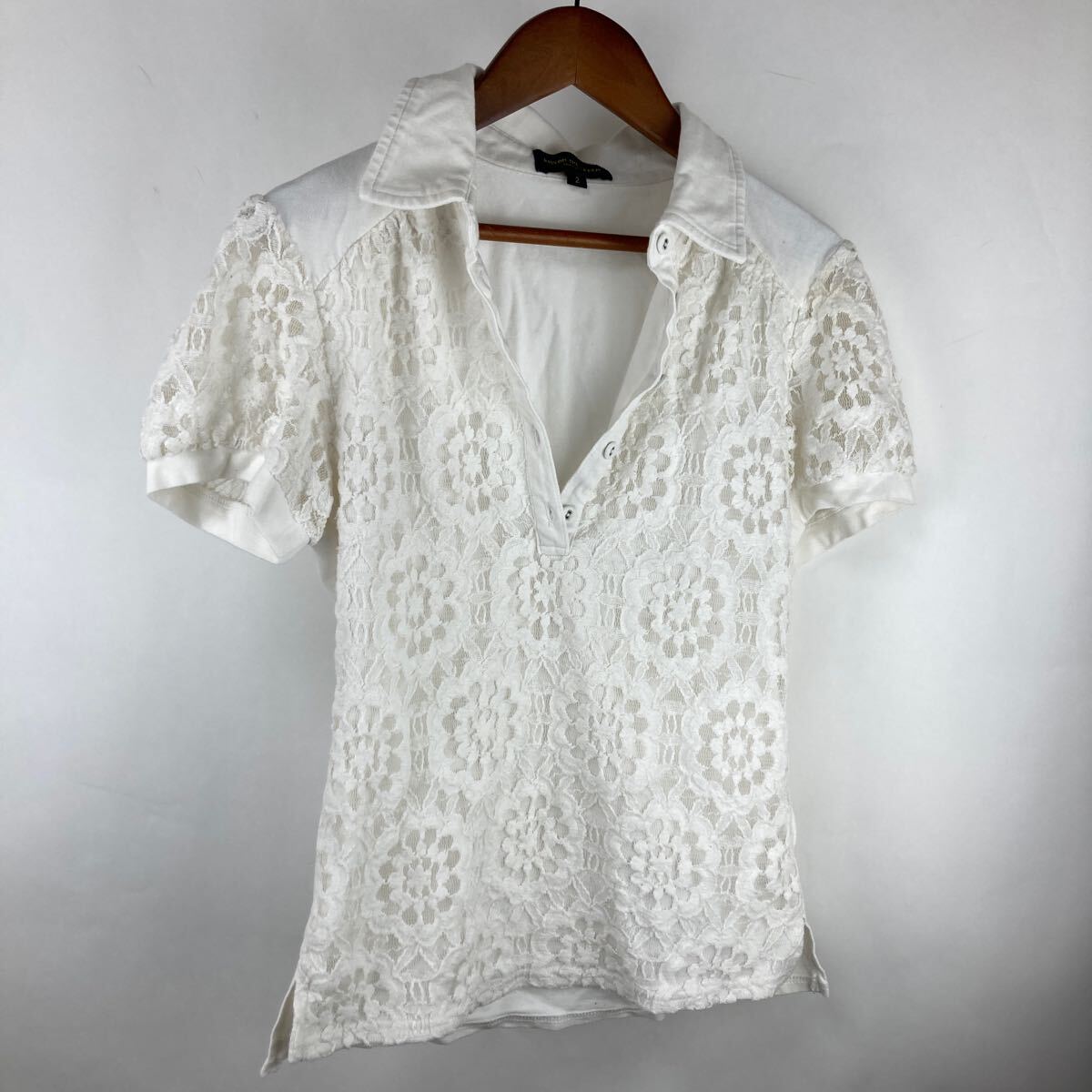> 半袖 カットソー ホワイト Tシャツ ブラウス 白 M シンプル ワンカラー 花柄 シースルー レディース ゴルフ ゴルフウェア スポーツ