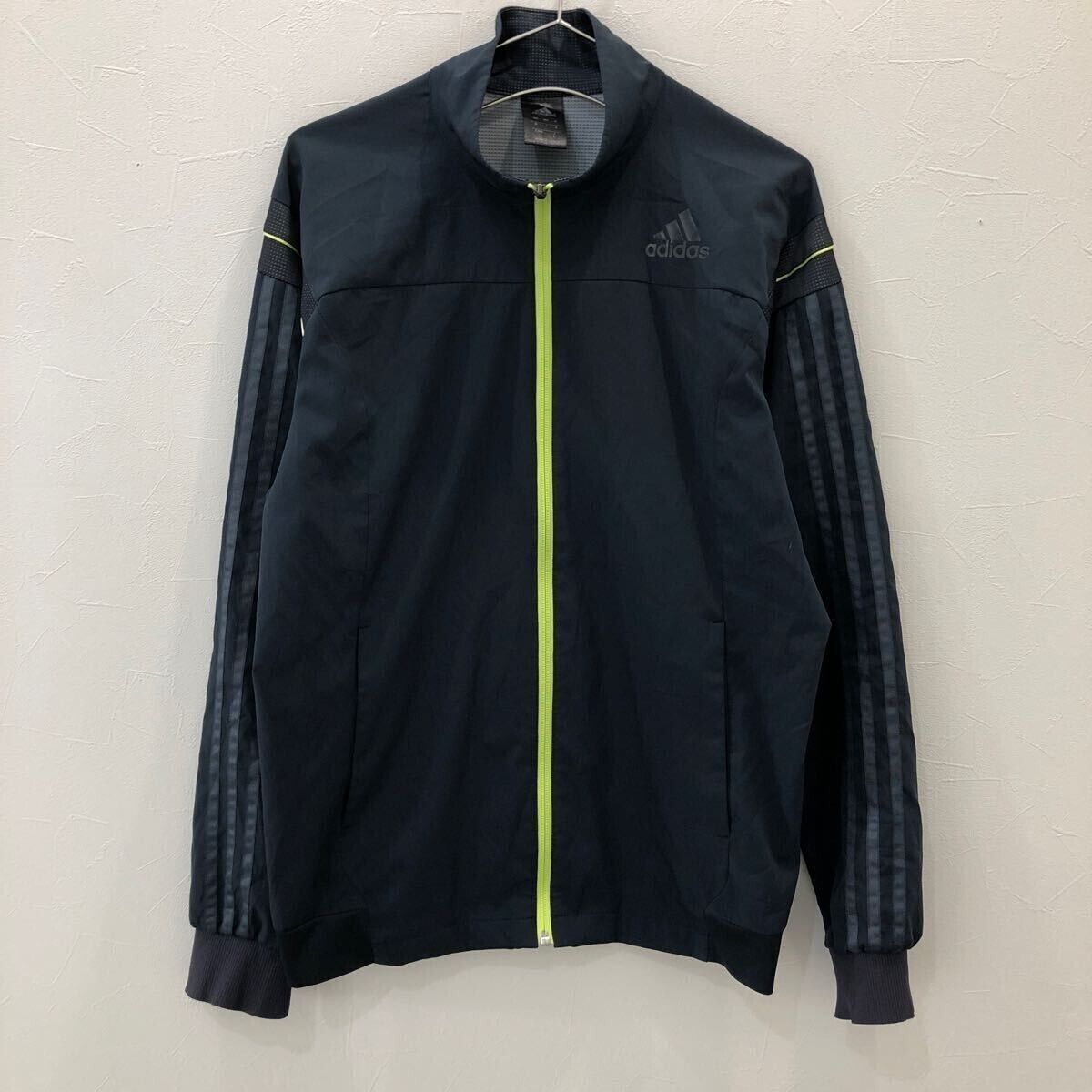 > WY140 adidas 長袖ジップナイロンジャケット ネイビー メンズ L 身幅54着丈66