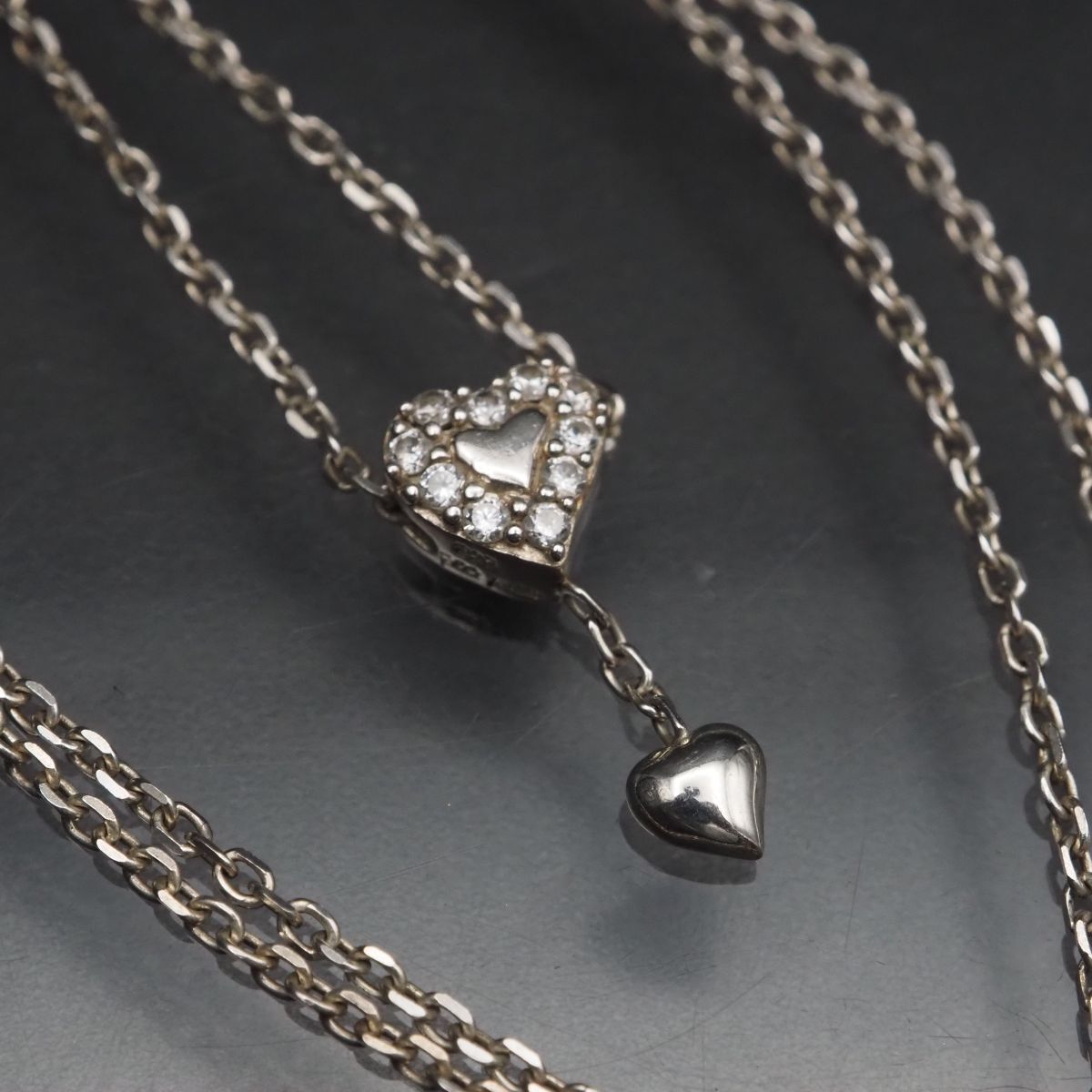 > F629 Folli Follie フォリフォリ 925刻印 ペンダント ネックレス ダイヤモンド風 ハート デザイン シルバー