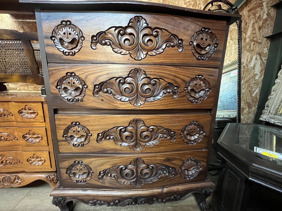 ●・アジアン家具 木彫り チェスト 4段 バリ風 タンス 箪笥 キャビネット インドネシア