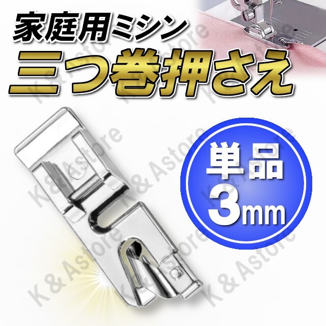 - 三つ巻押え 3mm 家庭用ミシン 三つ巻ラッパ 三つ折り 三巻 みつまき 端縫い アタッチメント ハンドメイド 洋裁 裁縫道具 手芸