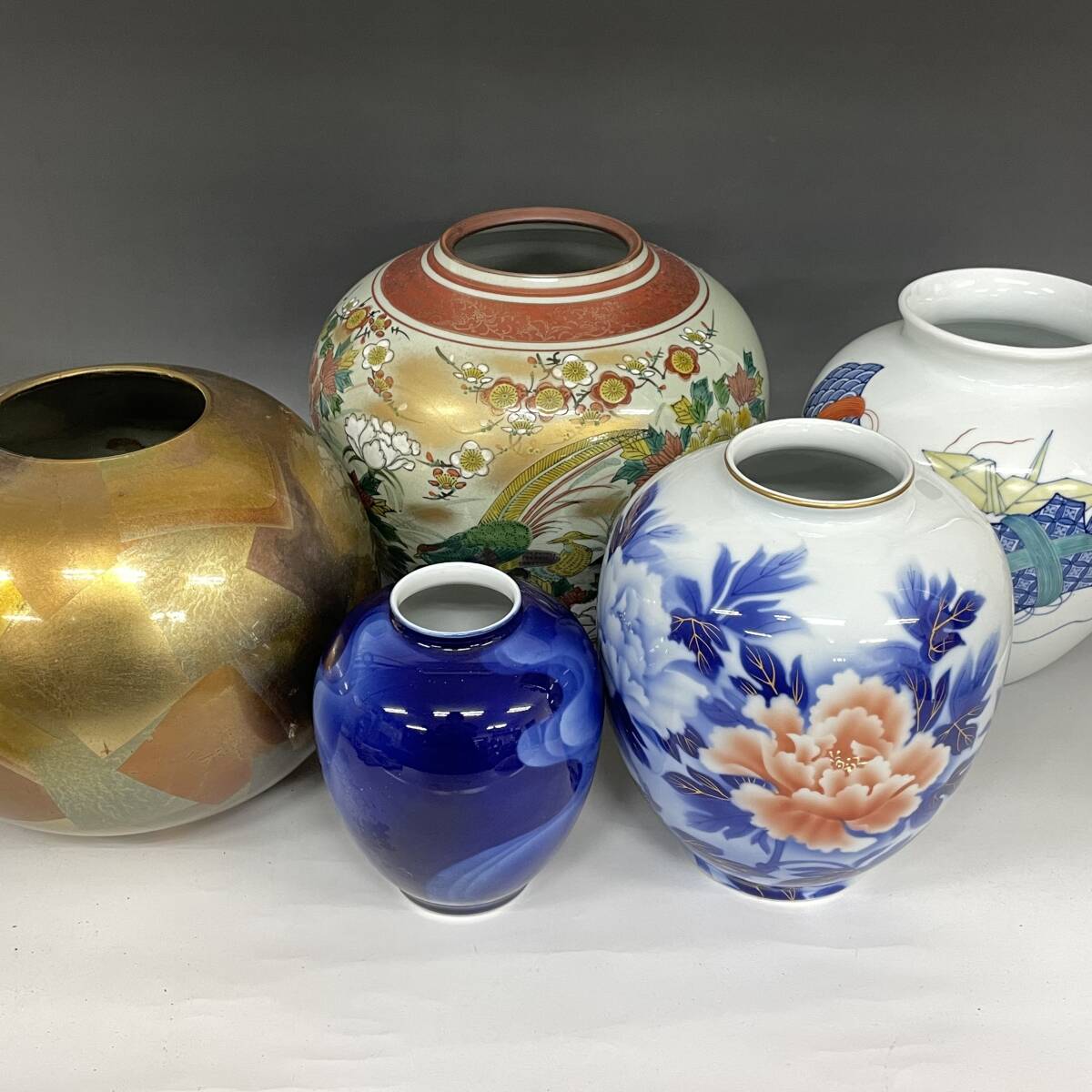> KF14/18 花瓶 まとめて 5点 陶器 花器 焼き物 在銘 フラワーベース 陶器 陶磁器 華道具 茶道具 花入 花生 深川焼 九谷焼 など◎