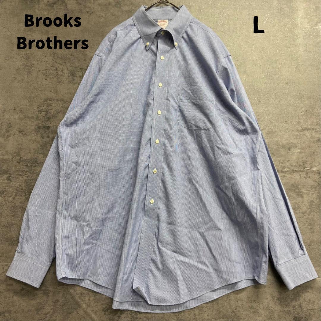 - ブルックスブラザーズ 定番 青 チェックシャツ Lサイズ 古着 BD【5812】