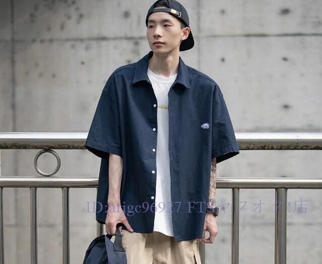 - ★新品メンズ 半袖 シャツ カジュアルな翻し襟 単色 薄手 夏服 ゆったりした ビッグサイズ /紺色