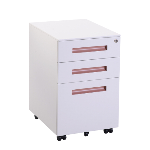 - オフィスワゴン (ホワイト+ピンク)デスクワゴン 完成品 サイドワゴン 1年安心保証 オフィスワゴン 大容量 3段 組立て不要 ホワイト