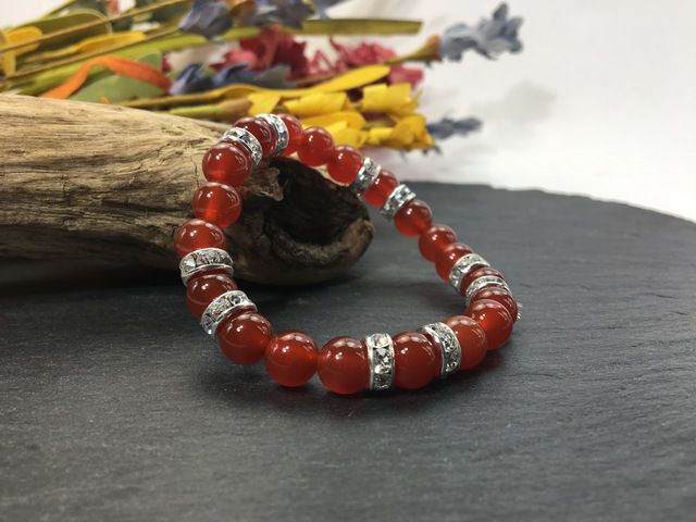- パワーストーン ブレスレット 赤瑪瑙 天然石ブレスレット (ロンデル:シルバー) 8mm レディース 7月誕生石 赤メノウ レッドアゲート