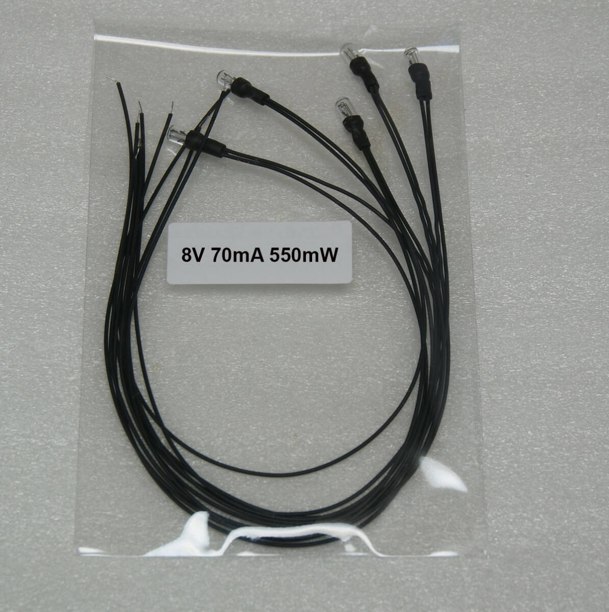 - 新品電球 8V 70mA 550mW 直径3mm 5個 セット リード線付 むぎ球 麦球 フィラメントランプ
