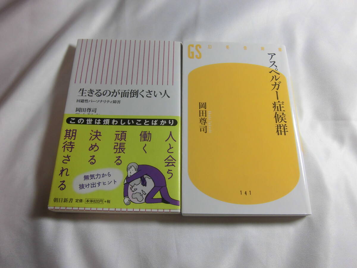 「生きるのが面倒くさい人 回避性パーソナリティ障害」岡田 尊司 (著) 2015年初版2017年3刷定価840円+税。と「アスペルガー症候群 」岡田 尊司 (著) 2009年初版2009年5刷定価800円+税。の計2冊セット。