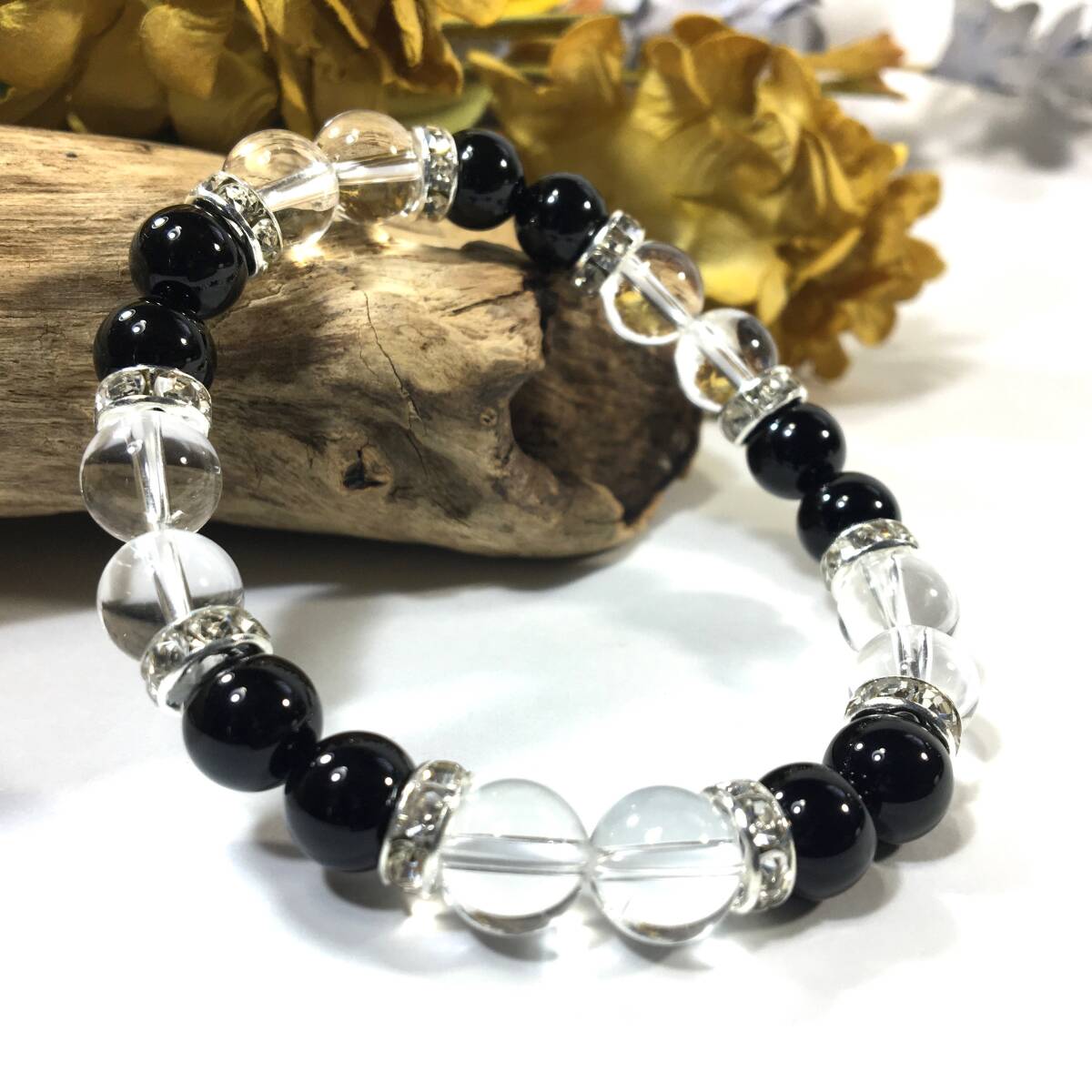 > オニキス&水晶 パワーストーン ブレスレット 天然石ブレス シルバー 8mm /開運 浄化 4月 誕生石 クリスタル レディース 通販 #2