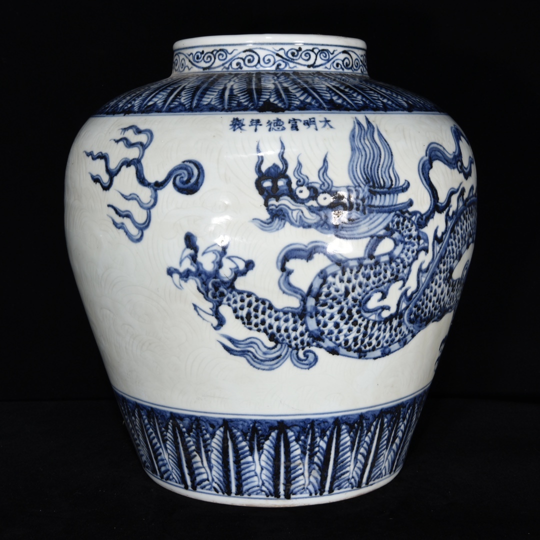 - 『館蔵珍品 明 宣徳年製款 古陶瓷品 青花 龍紋罐 陶芸』稀少珍蔵品 古賞物 貴重物品 収蔵品 中国古美術 時代物 古董品