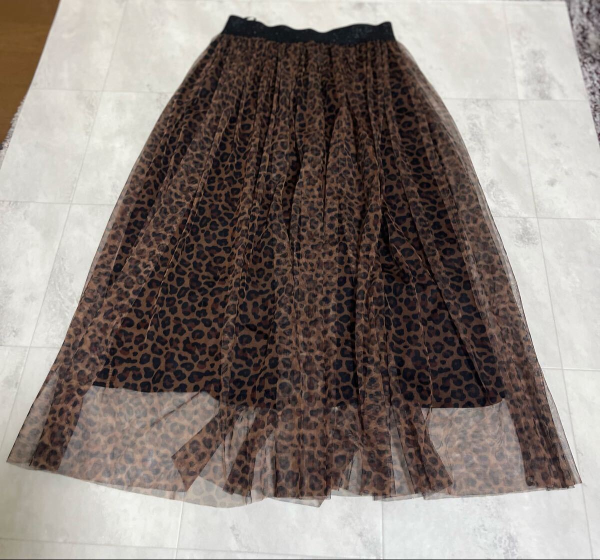 - ヒョウ柄 レオパード柄 チュールスカート フレアスカート ロング丈 Mサイズ(64-70)