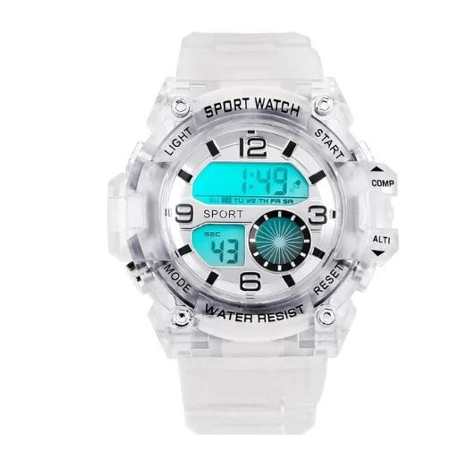 > スケルトン ホワイト 白 シルバー 透明 デジタルウォッチ 腕時計 ミリタリー スポーツ水泳用ビッグウォッチファッション30m防水 f5