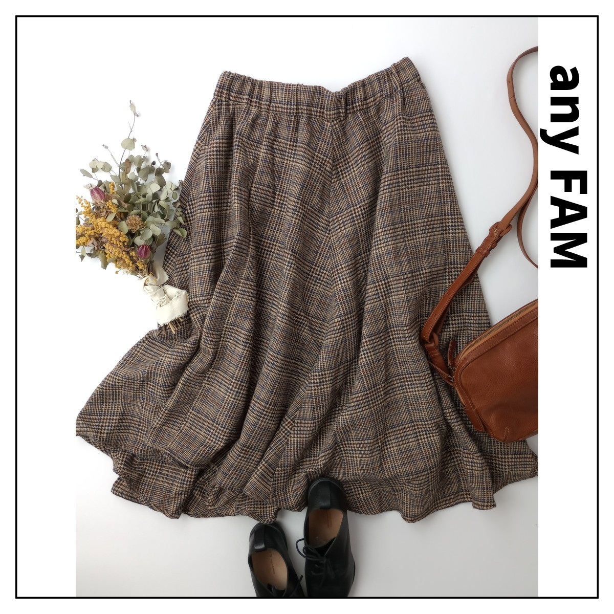 - any FAM エニィファム オンワード樫山「いつまでも愛され続けるチェック柄♪ 」ウール 毛 混 アシンメトリー フレア スカート 3(4M+5599)
