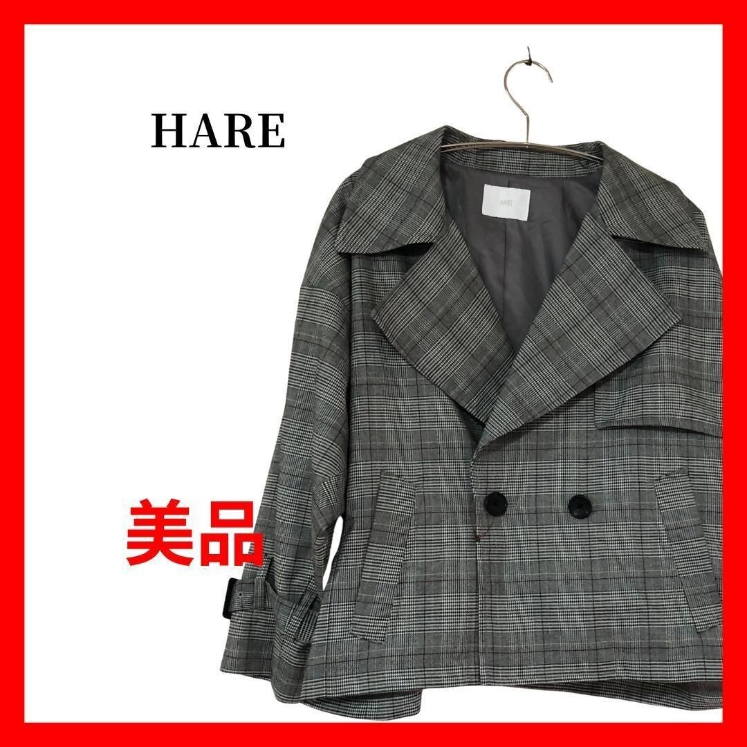 > 【美品】グレンチェック Pコート風 ショート丈 ジャケット アウター B2008