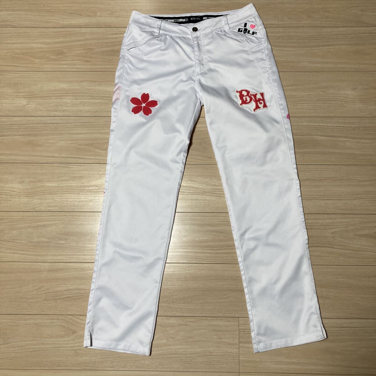 - Birdie hunt バーディーハント ゴルフウェア ゴルフパンツ ズボン ボトムス サイズ 32 白 ピンク 桜 ドクロ 髑髏