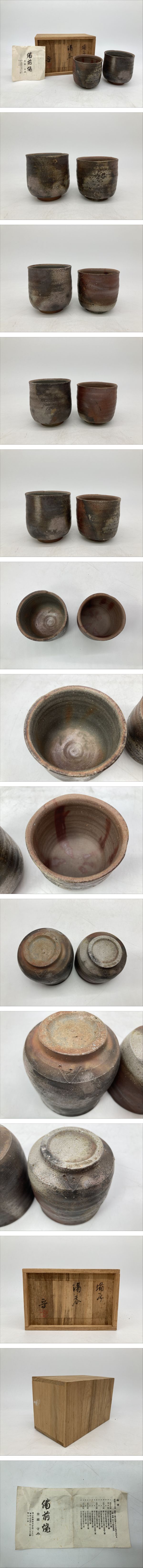 - 京都6★ 備前焼 柴岡守 夫婦湯呑 ペア 二個セット 共箱 茶器