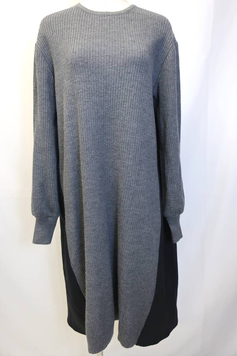 > 【送900円】1519 最終 BARNEYS NEWYORK バーニーズニューヨーク ニットドッキングワンピース セーター グレー×黒 アクリル ミディ丈