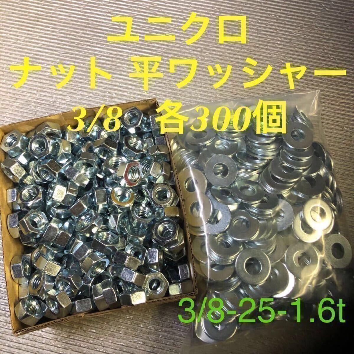 > ★送料無★ユニクロ 鉄 六角ナット・丸ワッシャー 3/8 各300個 ユニクロメッキ (平ワッシャー3/8-25-1.6t)