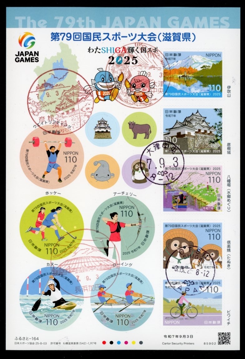 - B129 【初日印】第79回国民スポーツ大会・滋賀県[彦根須越、大津中央、長浜加田/令7.9.3]