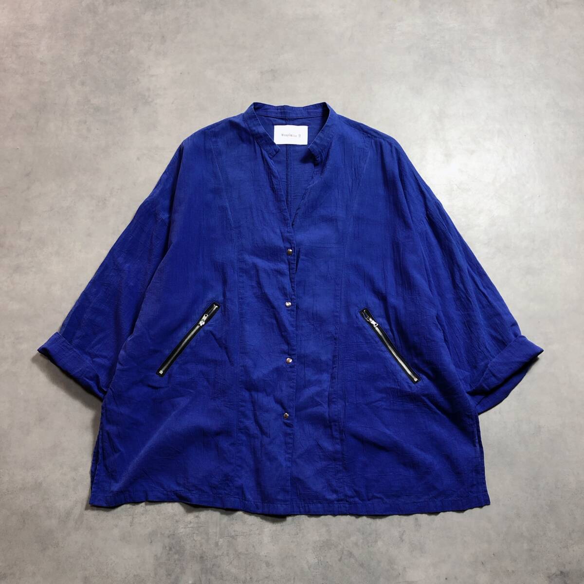 - WQ777●Wrapin nine9:ジップポケットコットンシャツジャケット ●M● ブルー シアーブラウス ラッピンナイン