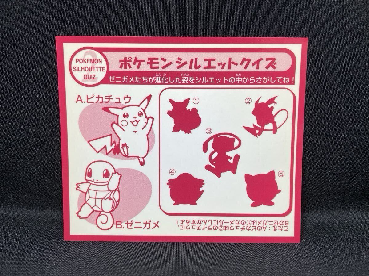 > ポケモン シルエット クイズ カード ピカチュウ ゼニガメ BANDAI 1998 ダス 進化 イラスト プレート ミュウ Pokemon Silhouette Quiz Card