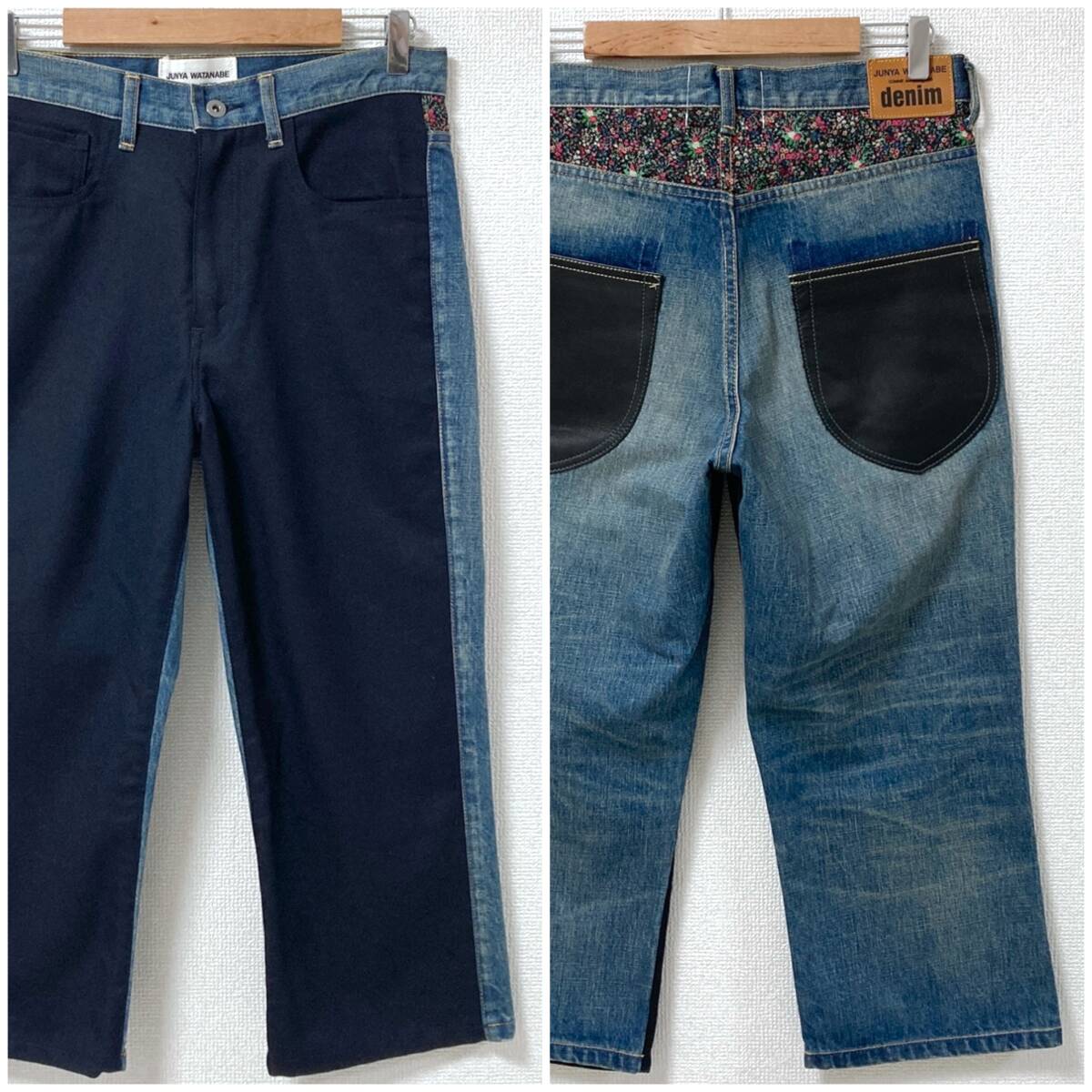 - AD2019 JUNYA WATANABE DENIM 異素材 ドッキング ウール レザー 花柄 クロップド デニムパンツ ジュンヤワタナベ ジーンズ archive 5090057