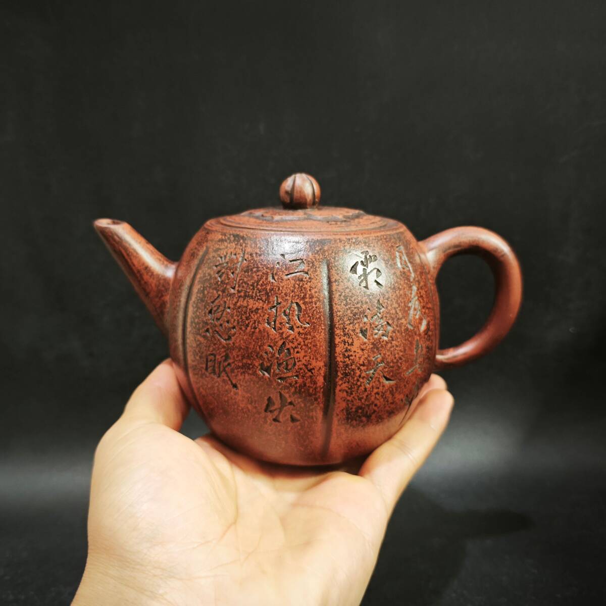 - 【超珍館蔵】紫砂壺 菱花壺 顧景舟款 清水泥 茶具 茶道品 置物 賞物 古賞物 古董品 古美術品 時代物 旧家蔵出 稀少珍蔵品