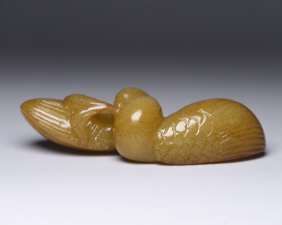 - 『館蔵珍品 和田玉製 細密彫 鵝如意 置物 賞物』文房具 書道品 貴重物品 収蔵品 中国古美術 時代物 古董品