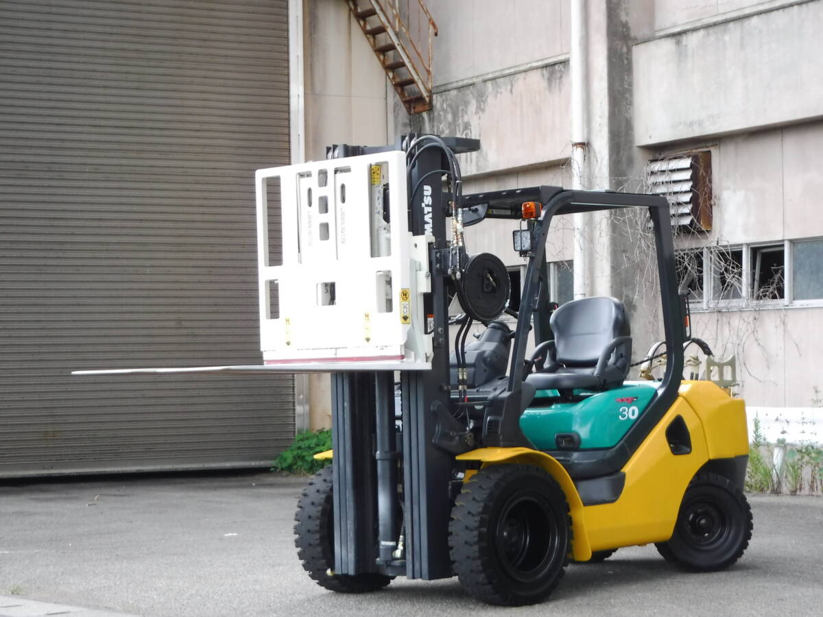 - フォークリフト3,0T車プッシュプルで三段フルフリーマスト仕様車天井が低くても荷役できる車両で稼働少なく1420hお買得車です