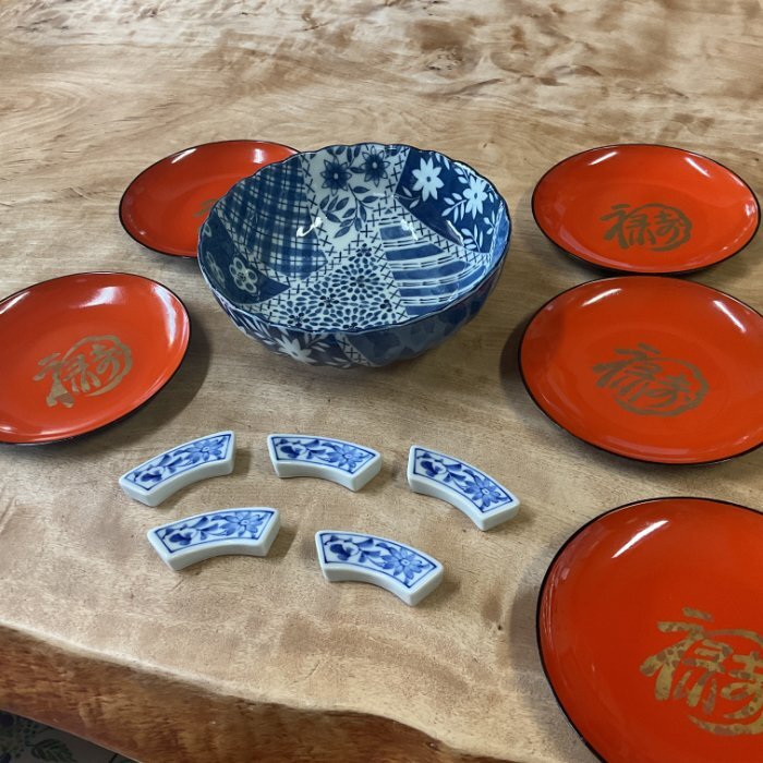 - おもてなし膳!1500円裂取文盛り鉢と銘々皿、箸置き5客セット