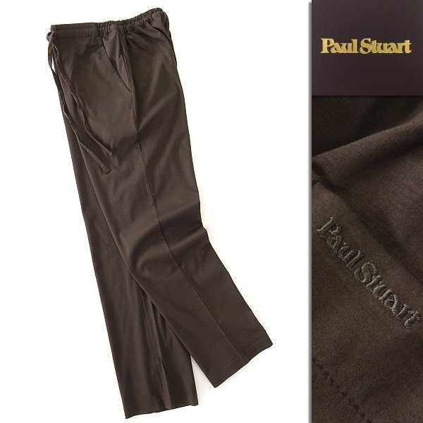 > 新品 ポールスチュアート ロゴ 刺繍 シルケット スムース イージーパンツ L 茶 【P25499】 Paul Stuart 日本製 メンズ ジャージー