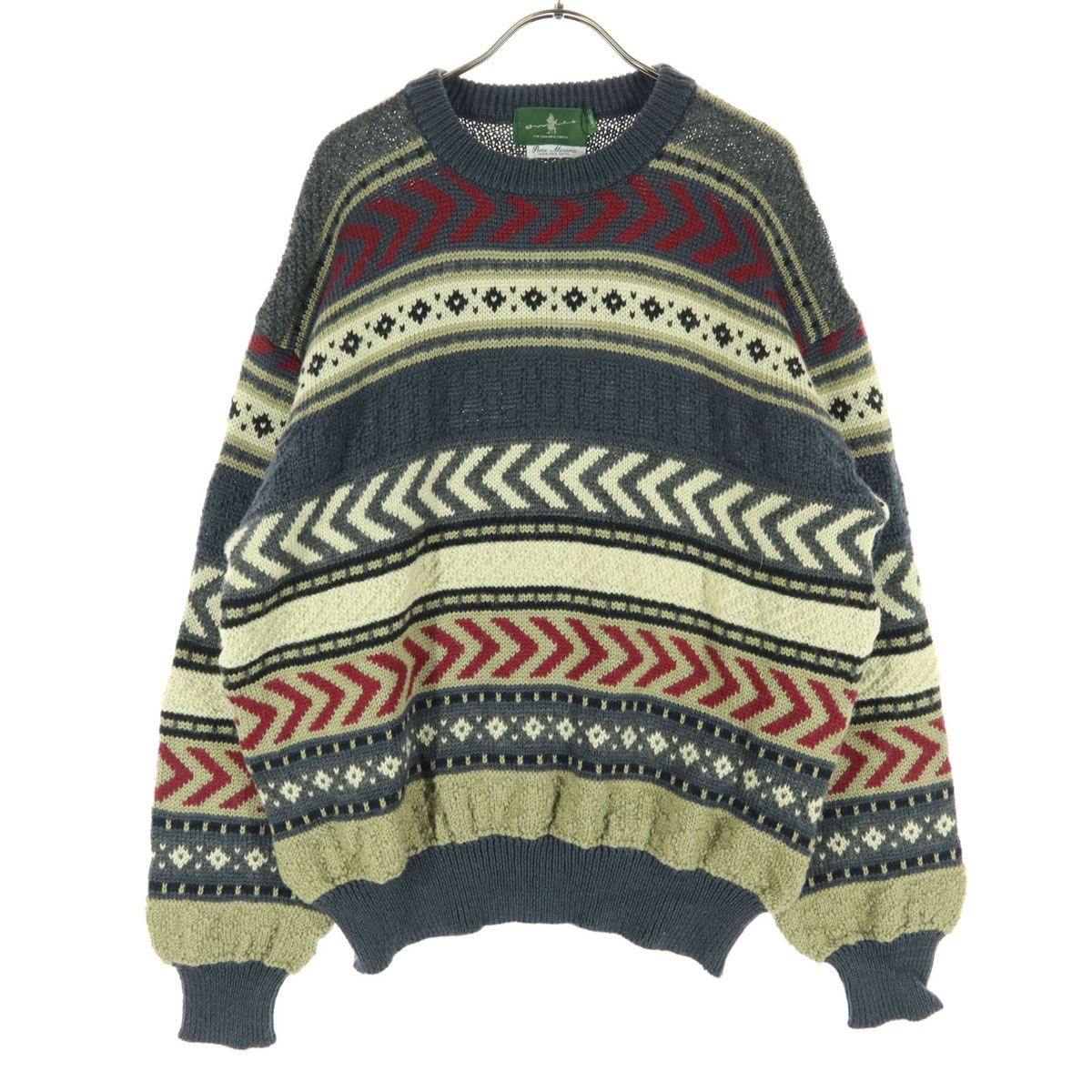 美品 ORDER オーダー 90s オールド フェアアイル柄 長袖 メリノウール ニット L ネイビー系 メンズ