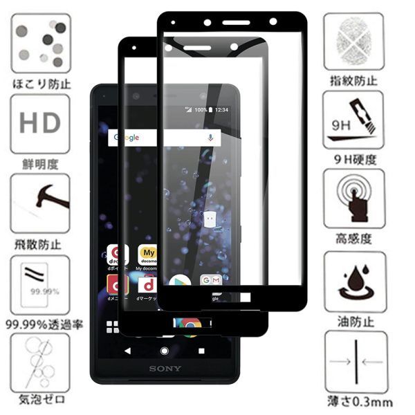 > 2枚入り 黒 Sony Xperia XZ2 Compact SO-05K ガラスフィルム 画面 保護 3D 曲面 9H カバー シール シート Glass Film スクリーン 高透過率