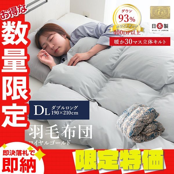 - 【限定セール】ダブルロング 日本製 羽毛布団 ダウン93% 400dp ロイヤルゴールドラベル認定 掛け布団 抗菌 防カビ 立体キルト 快適 暖かい