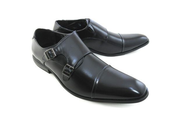 - [送料無料]Q714新品AAAモンクストラップ/ウィングチップ28㌢黒♂