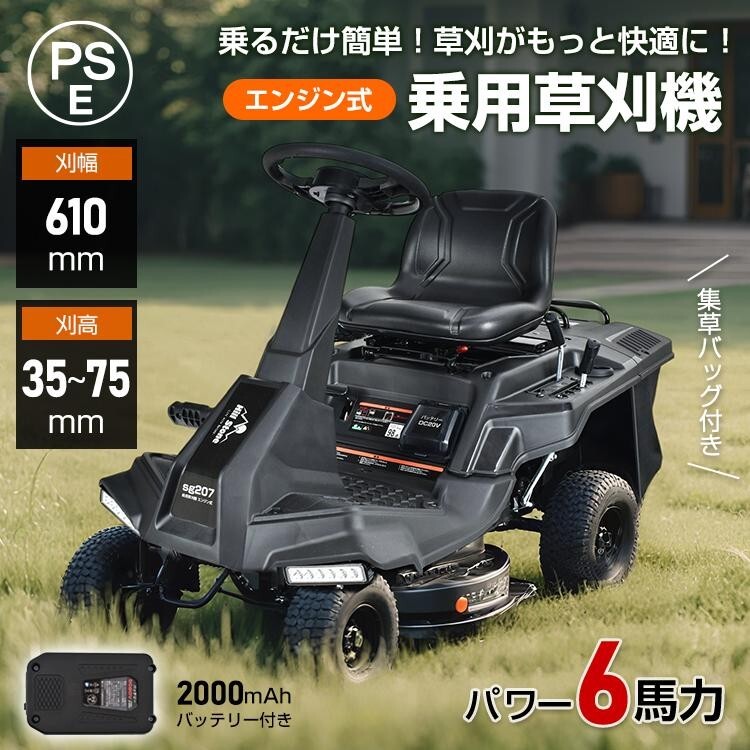 - 送料無料 エンジン式 乗用 草刈機 草刈り 芝刈機 6馬力 ハイパワー 乗用型 4サイクル 4ストローク ロータリー式1枚刃 横排出 sg207