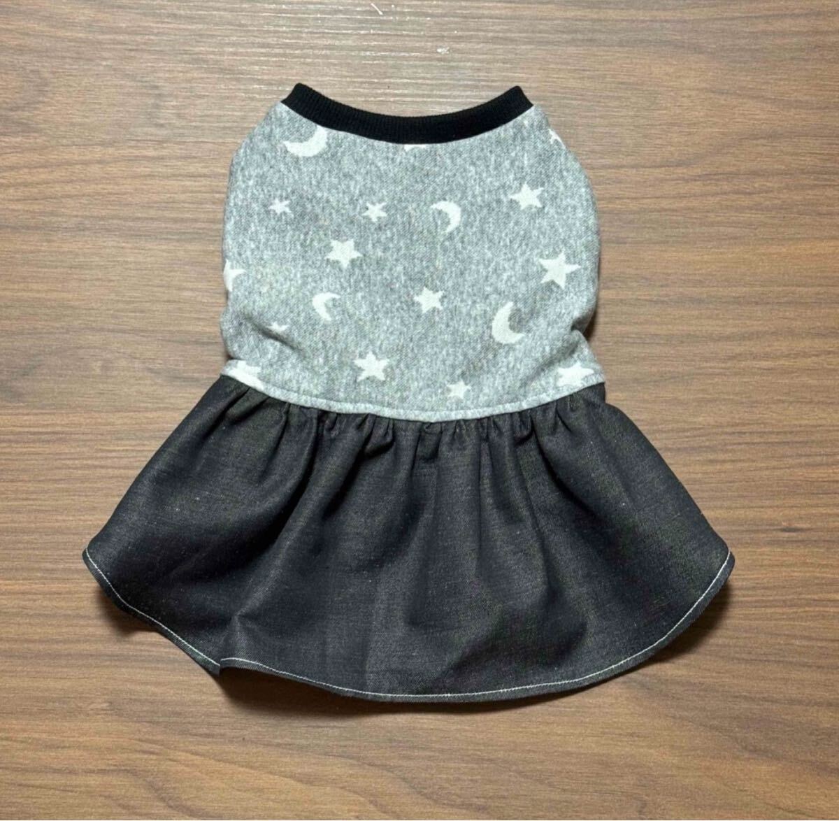 - 月 星柄 デニム ワンピース Sサイズ 犬服 ハンドメイド