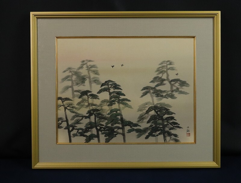 - 10903■【真作】横山大観 「曙」絹本 工芸印刷 水戸の人 巨匠 額装
