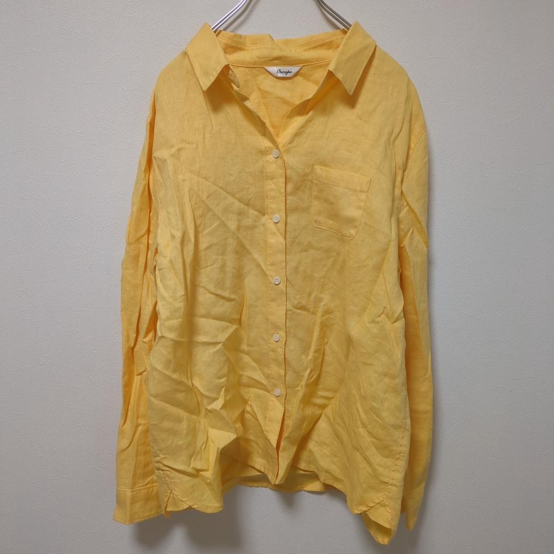 - Oscope(M)オープンカラー長袖シャツ*綿100%*ドロップショルダー*黄色