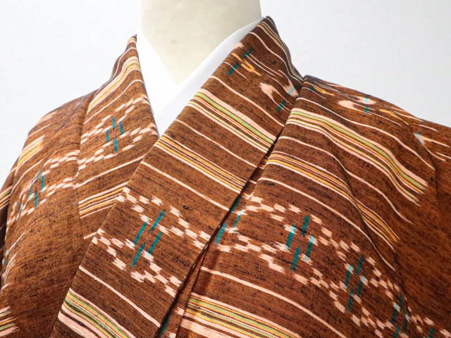 > 《京都一輝堂》リサイクル着物 紬 しつけ付 正絹 身丈約160cm 裄丈約63cm 25z09-5549