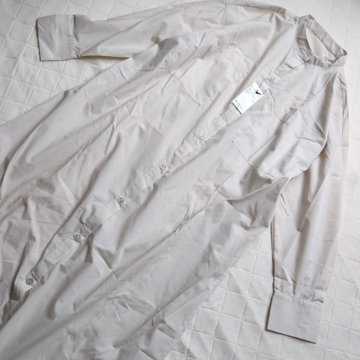 - タグ付き未使用【Melan Cleuge】 長袖シャツワンピース(F/フリーサイズ)ベージュグレー/ ロング丈/ ゆったり
