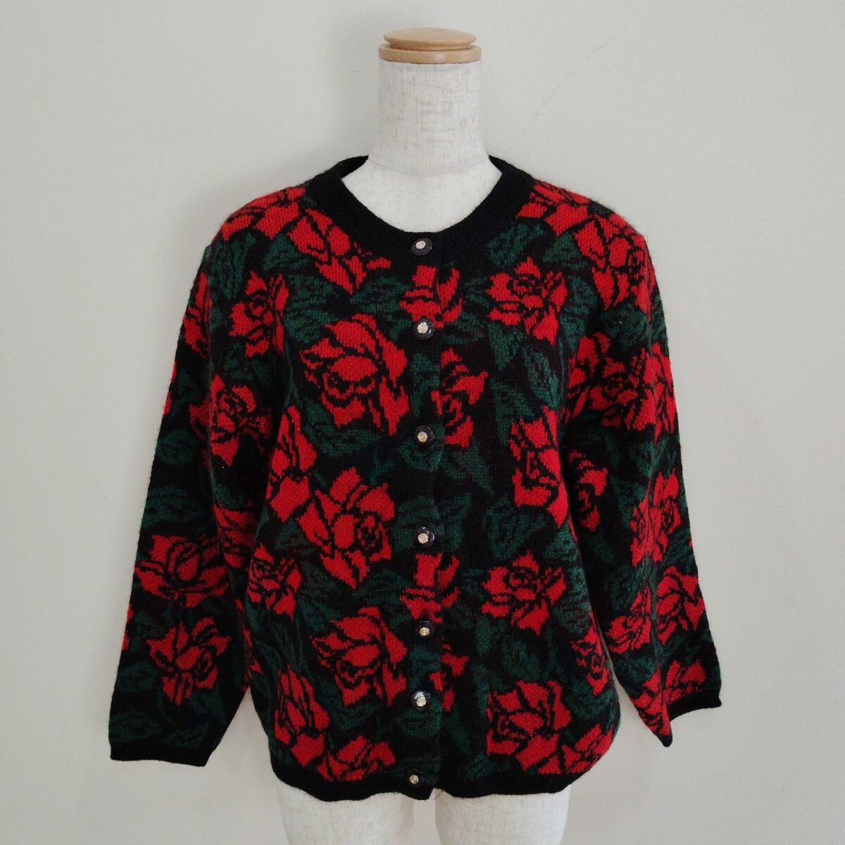 - 1001/M/Azay le Moda レディース カーディガン ニット ジャガード 花柄 黒