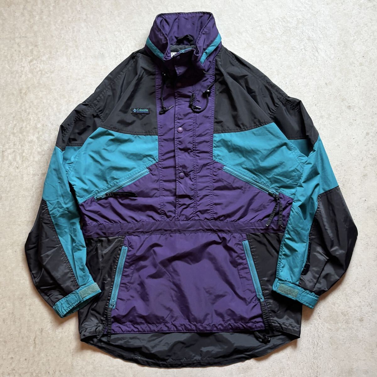 > 【90s】Columbia コロンビア ナイロン アノラック マウンテンジャケット パーカー メンズ M 黒/BLACK 紫 アウトドア ロゴ VINTAGE 正規品