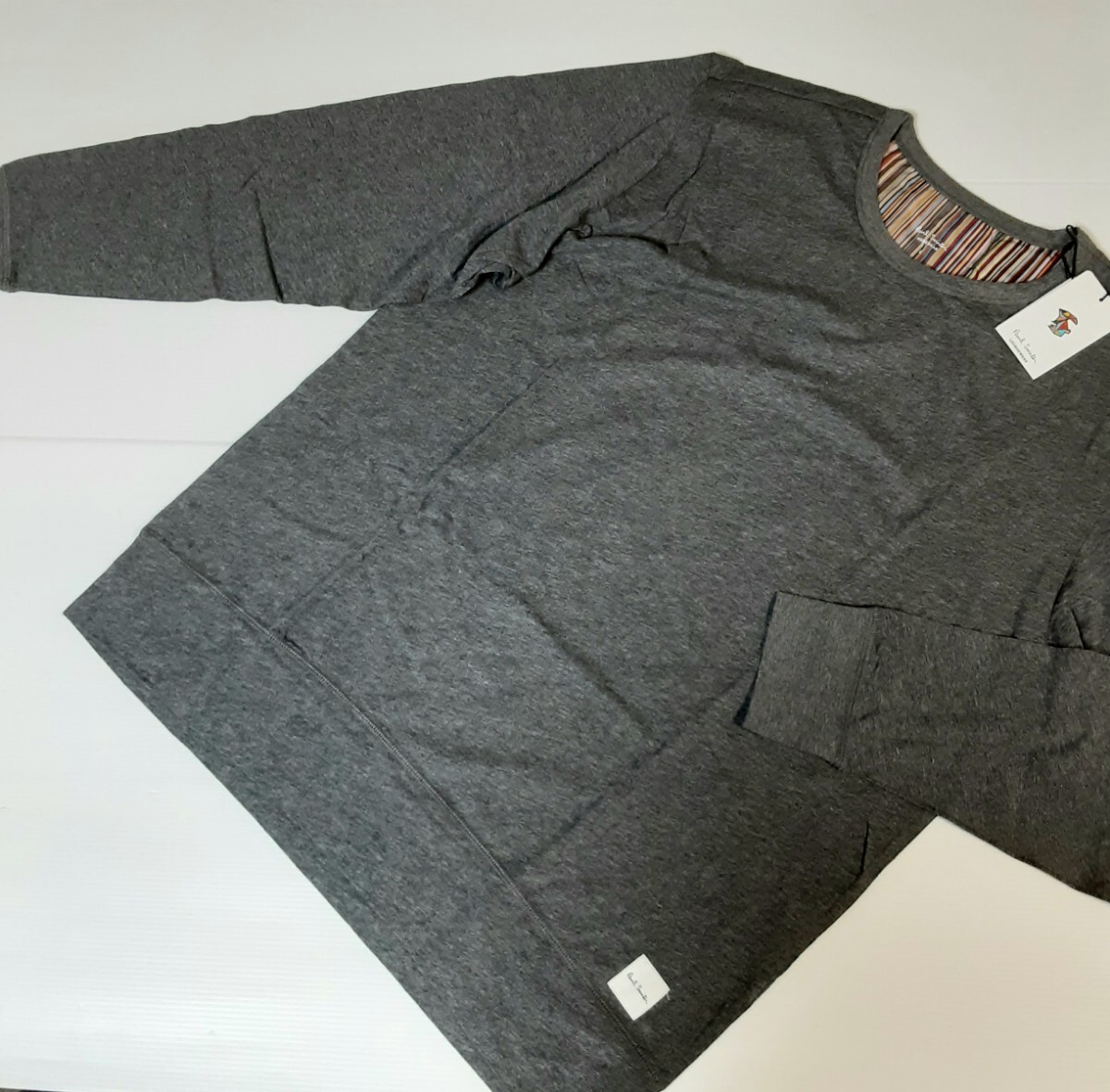- 新品未使用 ポールスミス Paul Smith マルチストライプ 長袖Tシャツ L チャコール HOME WEAR ロゴ入り