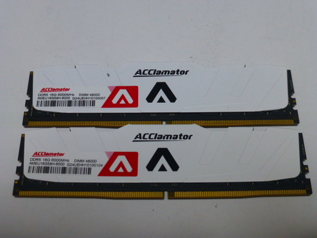 > メモリ デスクトップパソコン用 ACClamator DDR5-6000 PC5-48000 16GBx2枚 合計32GB 起動確認済みです AMEU16G58H-6000